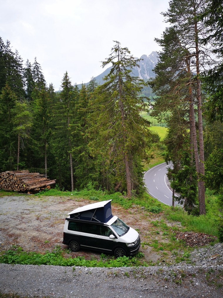 Nachdem wir die Gegend noch etwas auskundschaftet und eine Partie Minigolf in Cazis gespielt haben, satteln wir den Bulli abermals und fahren weiter bis nach Cunter im Surses. Schnell noch zwei Pizzen im Ristorante Pizzeria Hotel Post abholen, den Übernachtungsplatz aus der park4night App beziehen und gemütlich den Tag bei einem Glas Wein ausklingeln lassen.