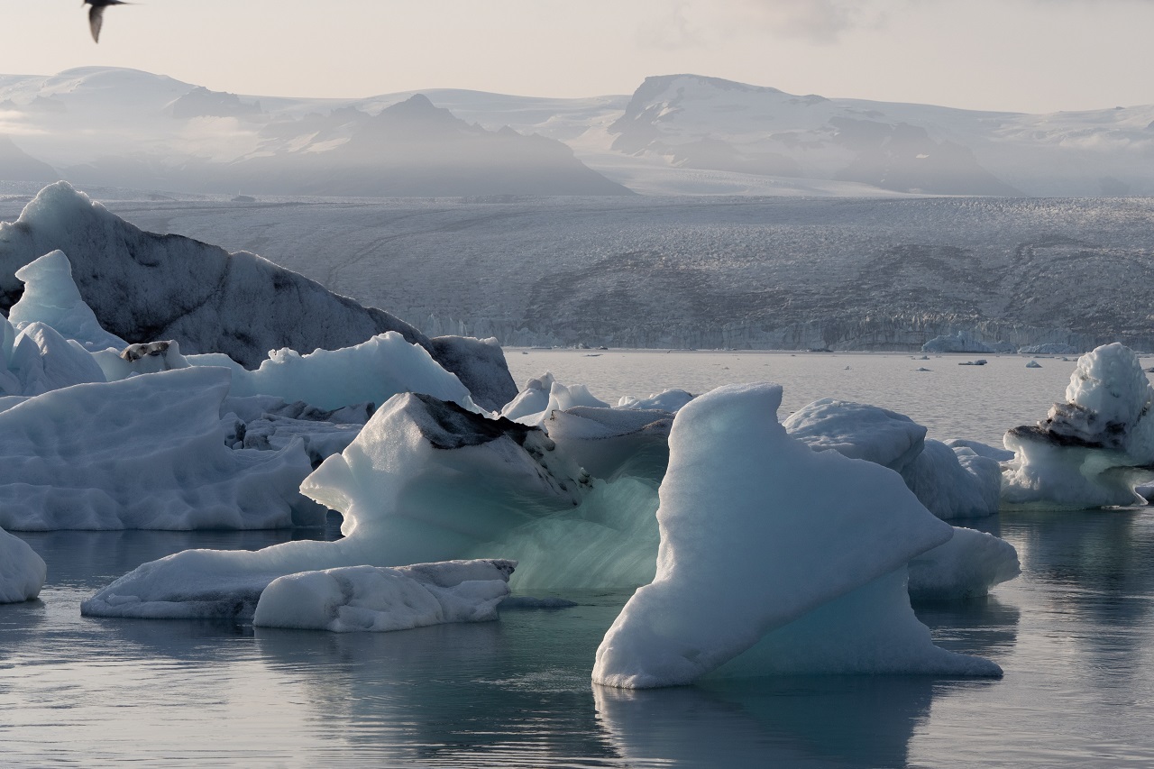 Spontan, weil das Wetter heute so traumhaft ist, ziehen wir ein Highlight der ganzen Reise vor und düsen 40 min weiter zur Gletscherlagune. Zuerst zum kleineren und unbekannteren Gletschersee Fjallsárlón und schon fast zur Abenddämmerung, zum Jökulsárlón. Der Fjallsárlón ist voll mit Eisblöcken und der Gletscher sehr nah. Ein paar Mal hören wir, wie ein Eisblock abbricht und ins Wasser stürzt. Das Geräusch ist zu vergleichen mit einem Donner. Einige Minuten später erreicht die vom abfallenden Eis produzierte Welle den Strand und die Eisblöcke in der Lagune fangen an, sich zu bewegen. Hier waren wir fast allein und haben über eine Stunde Fotos geknipst und Zeitraffervideos erstellt.