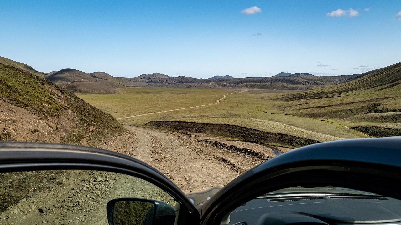 Ein Ausflug ins Hochland sollte unserer Meinung nach bei einer Islandreise auf dem Programm stehen. Wichtig ist hierbei, dass Du einen 4×4 Mietwagen benötigst, denn die F-Strassen – unbefestigt und oft mit Schlaglöchern und teilweise sogar Flussdurchquerungen – dürfen nur mit Allradfahrzeugen befahren werden. Von Hella aus sind es ca. 2.5h bis nach Landmannalaugar (plus die Zeit für unzählige Fotos-Stopps). Hinter jeder Kurve verbirgt sich ein neuer Blick auf Berge, Gletscher, Seen oder Lavalandschaft und man muss immer wieder die Kamera zücken.