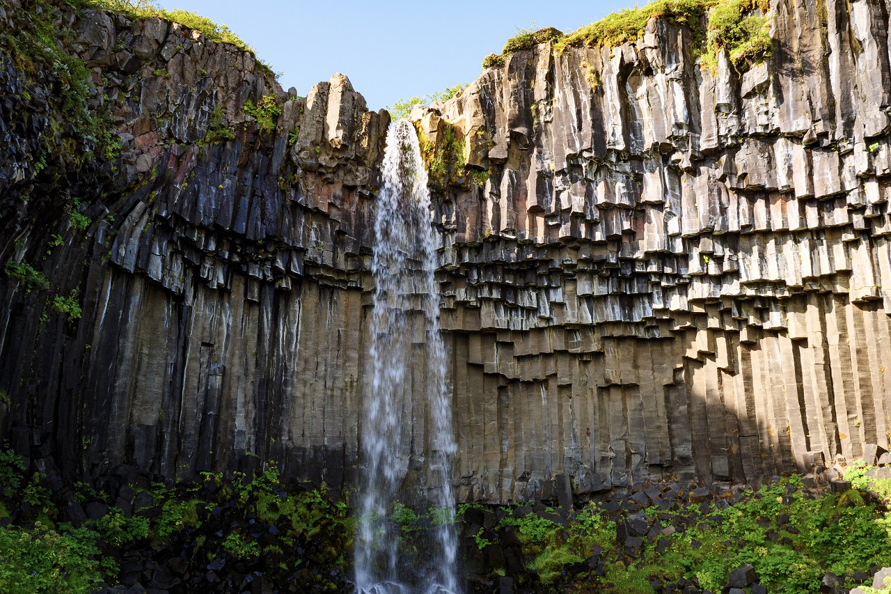 Nur zwei Minuten weiter liegt der Parkplatz vom Skatafell Nationalpark. Hier wartet etwas Bewegung mit Ziel – genau, einem Wasserfall. Der erste & einzige für heute. Der Svartifoss ist viel kleiner, als die der letzten Tage, aber die Besonderheit liegt in den schwarzen Basaltsäulen, ähnlich wie am Reynisfjara Beach.