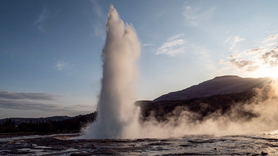 Erste Etappe am Anreisetag – Geysir Strokkur und Wasserfall Gullfoss.